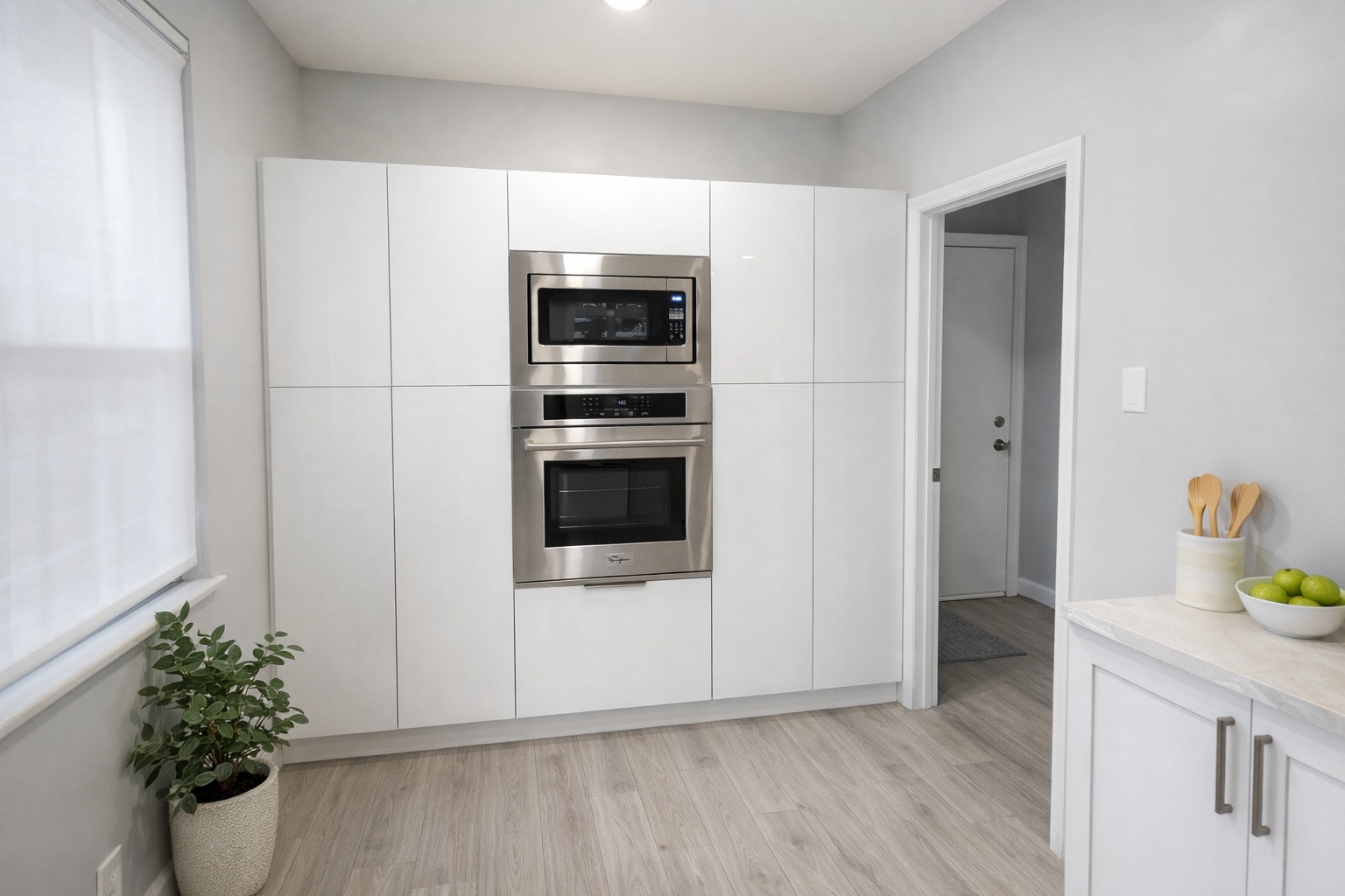 Trim, paint, hardware placement, cleanup, and final walkthrough.